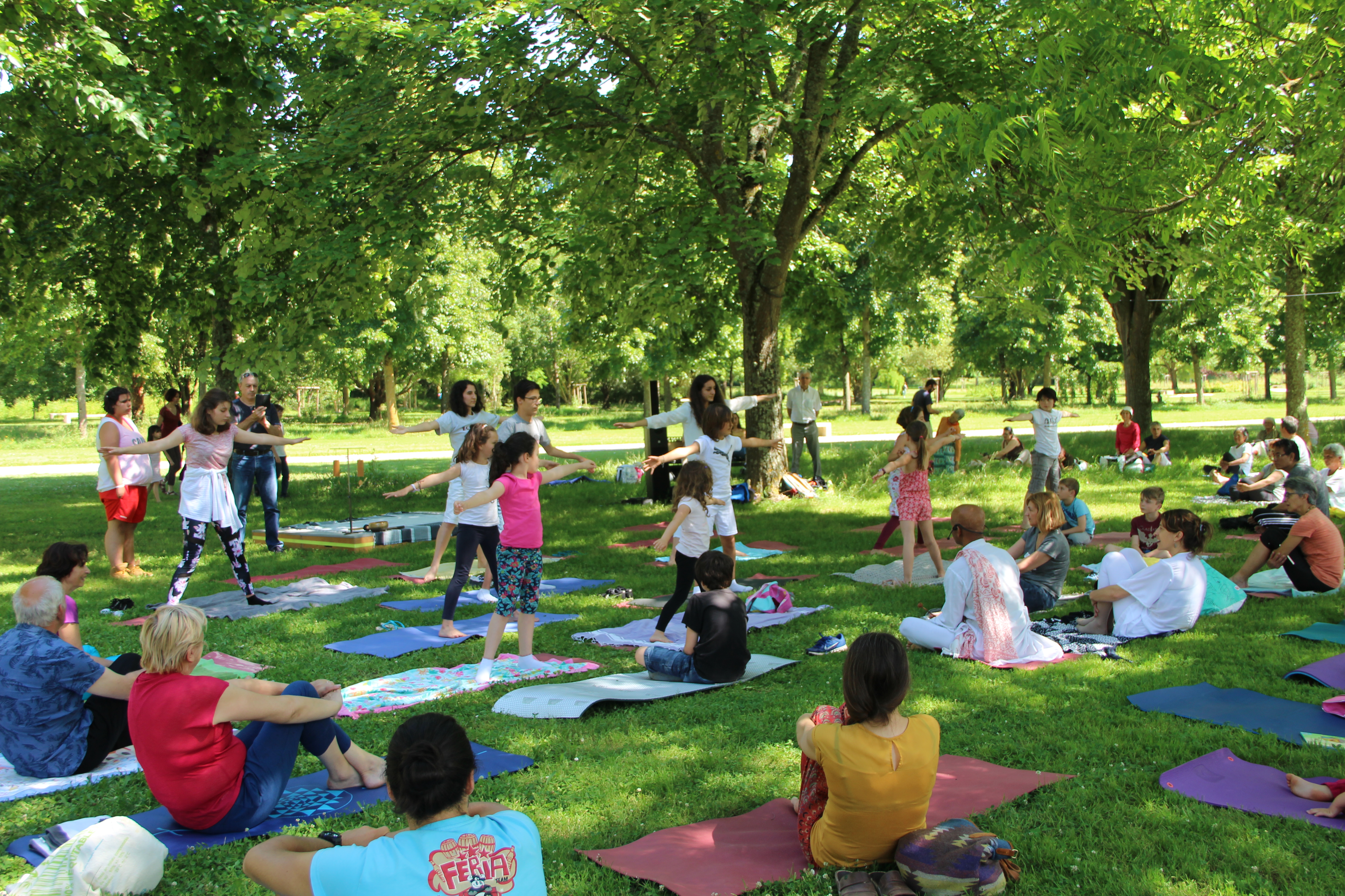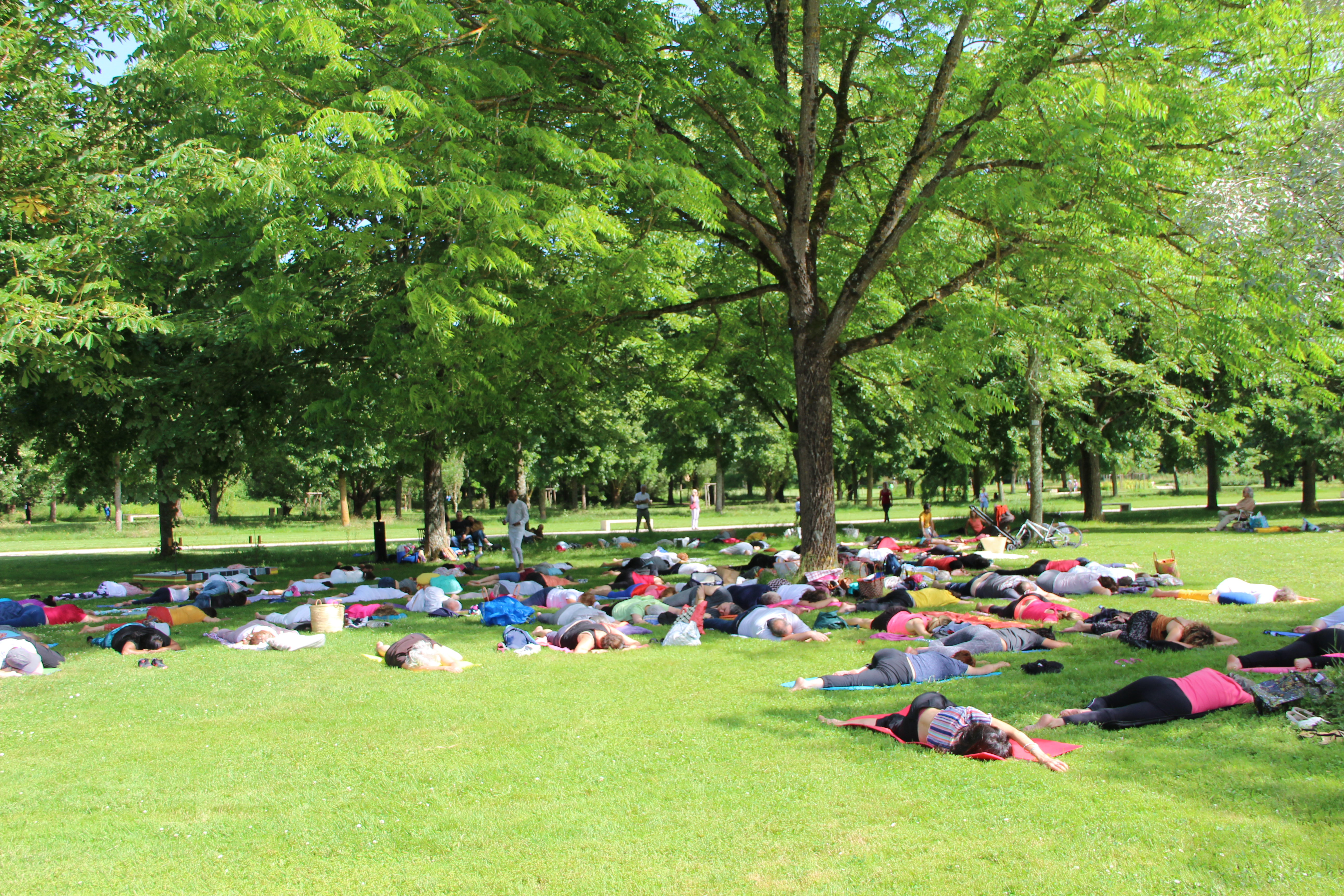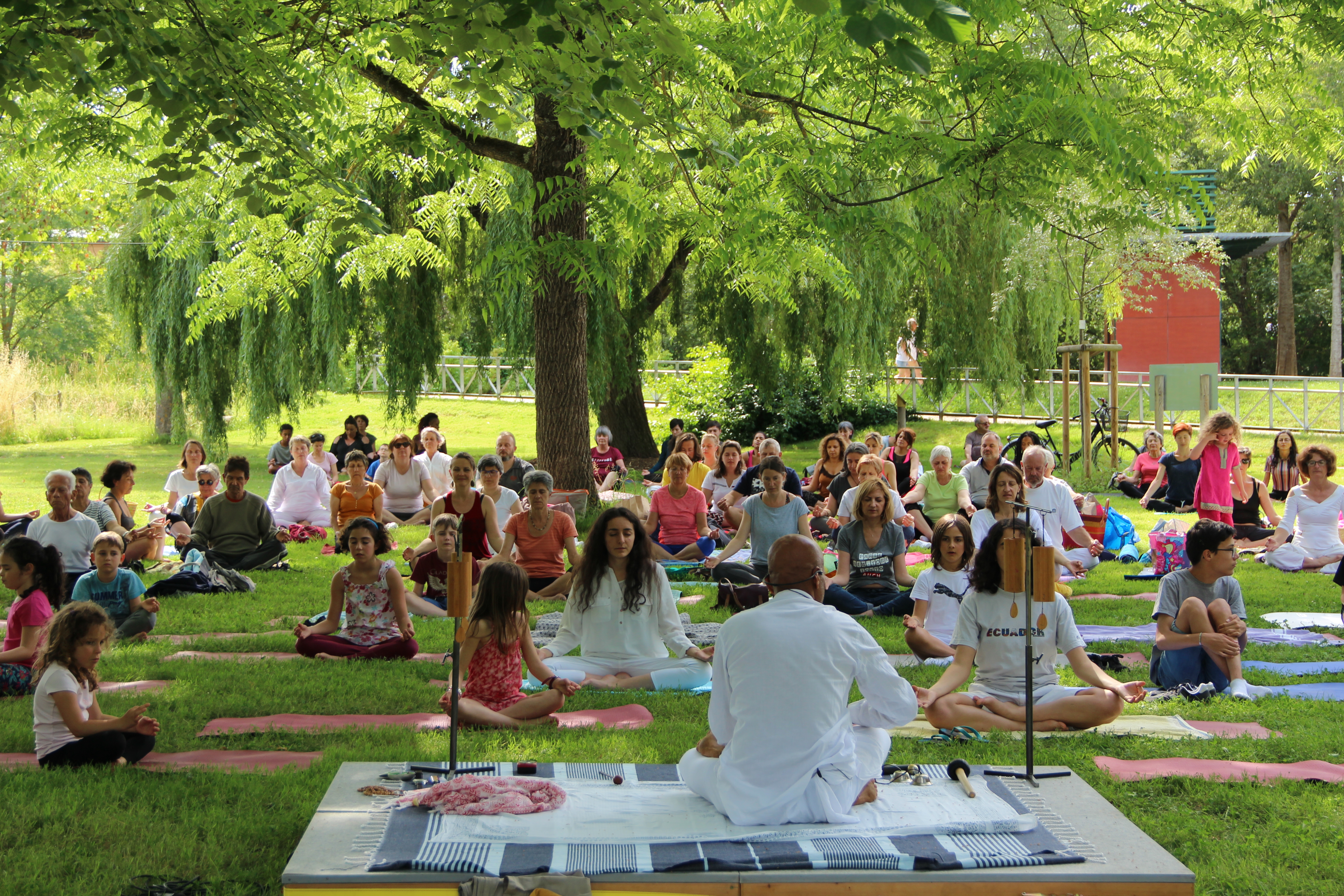 Séance de yoga, yoga Nidra et méditation, tous ensemble, connectés  avec soi-même et avec tous les autres participants, adultes de tout âge, enfants, adolescents, habitués à la pratique du yoga ou dans un simple esprit de découverte de cette pratique traditionnelle.